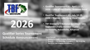 The first MO-TBF Junior & High School Trail event for the 2025/2026 season will be held Sunday, October 5, 2025 at Truman Lake, Truman State Park Boat Ramp. Compete and earn points to advance to the 2026 TBF Junior World Championship or 2026 TBF SAF High School Fishing National Championship. This is a team event. …